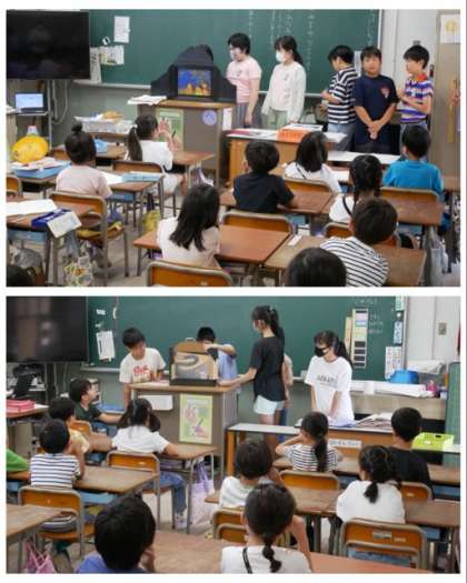 図書委員会は、朝の会の時間に1年生の教室で紙芝居をしました。