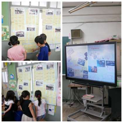 2年生は、町たんけんのまとめとして、みんなで気づいたことを出し合って大きな壁新聞を作りました。