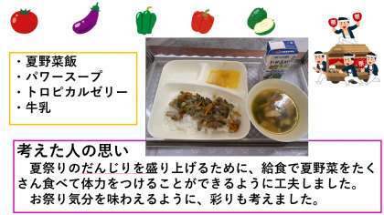 ★夏野菜飯★パワースープ★トロピカルゼりー★牛乳