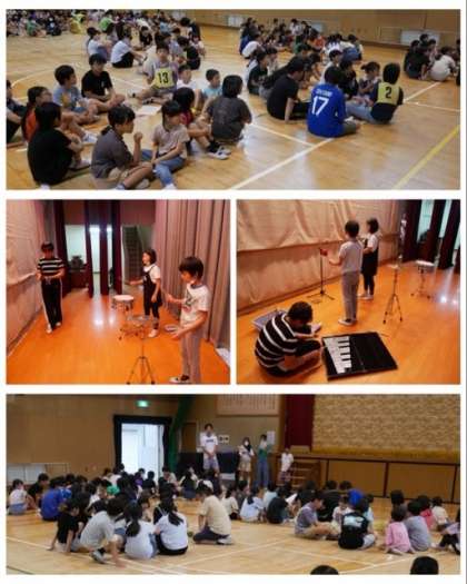 今日の集会は、「ステレオサウンド」です。聖徳太子ゲームの楽器バージョンで、一度に3種類の楽器の音を聴き分けて、その楽器名を当てるゲームです。一番多く当てられた縦割り班の人たちは、その場で立ち上がって拍手してもらいました。