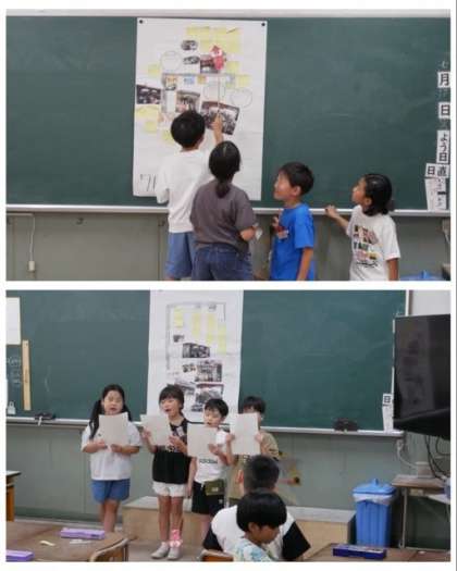 2年生は、生活科で町たんけんをして気づいたことやお店やさんで聞いたことを壁新聞にして発表しました。