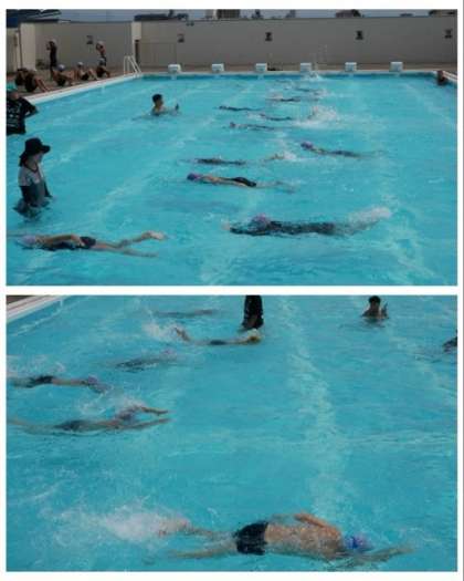 4年生は、水泳の学習で面かぶりクロールから息継ぎを上手にできるようにがんばっています。