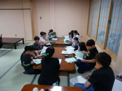 一日目の終わりに、室長が集まって、今日の反省と、明日の予定を確認しました。おやすみなさい。