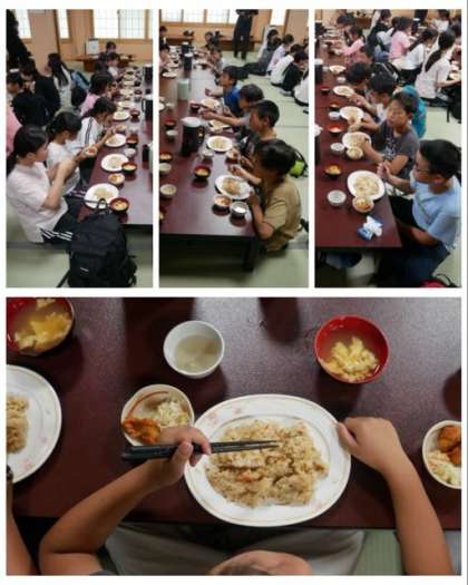 林間学習最後の食事となりました。かやくご飯とかき卵汁を美味しくいただきました。
