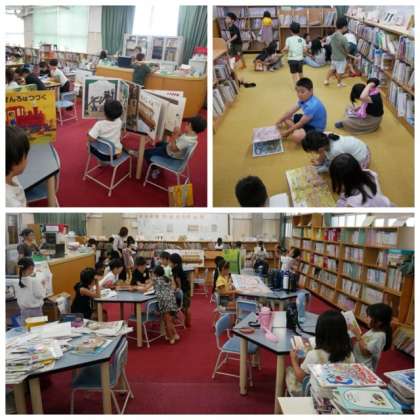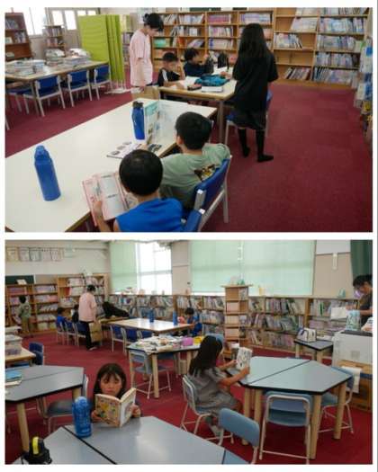 今日は、学校図書館開放日でした。低学年と高学年で時間を分けて、たくさんの人たちが読書を楽しんでいました。