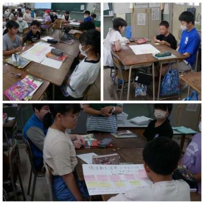 5年生は、国語科の学習として「係活動を活発にするには、どうすればいいか」を問題点と、それに対する解決方法について意見をまとめ、グループごとに役割分担をして意見交流をしました。これらかの話し合い活動に活かしてほしいです。