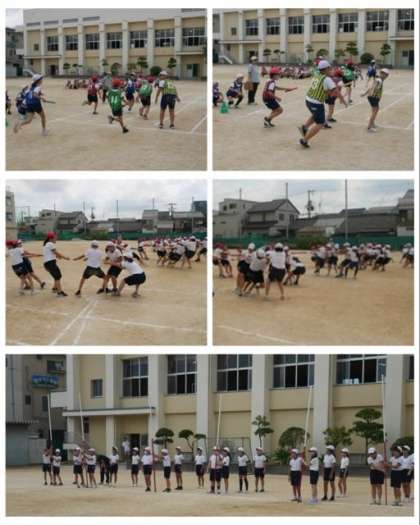 5年生は、運動会で行うリレーと団体競技の棒引きを練習しました。
