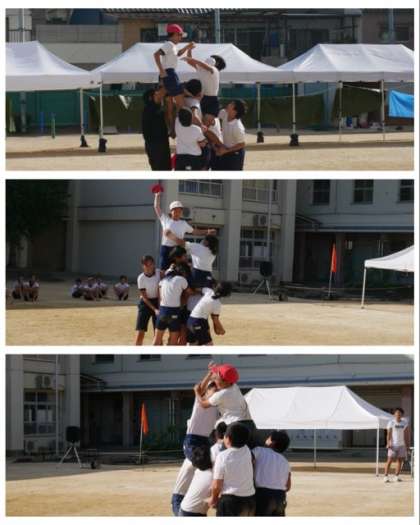 6年生は、運動会の団体競技の騎馬戦の練習を運動場で行いました。