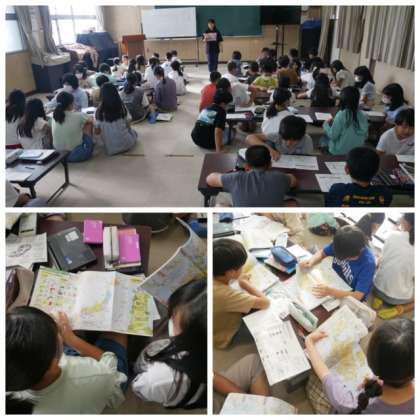 5年生は、遠足で日本民家集落博物館を見学するので、日本各地の家屋の特徴について地図帳や、一人一台学習者用端末を使って調べました。