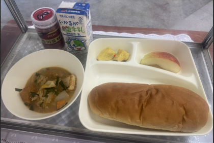 ★中華煮 ★大学いも ★りんご ★黒糖パン ★牛乳
