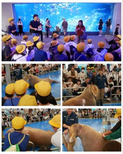 鳥羽水族館では、セイウチふれあいタイムでセイウチのショーを見学したり、世界の海に住む珍しい魚や生き物をグループに分かれて見学したりしました。また、家族へのおみやげも探していました。