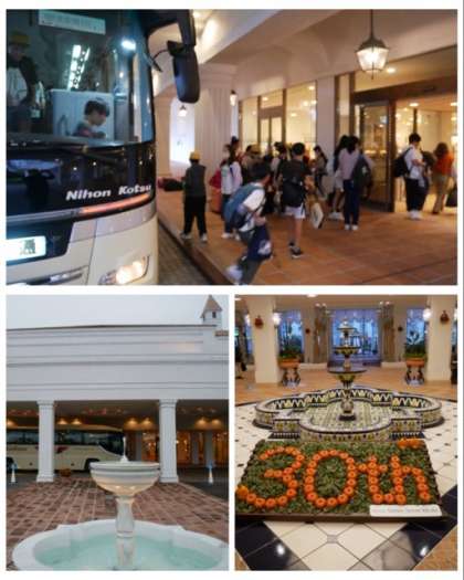 予定通りの時間に、今日の宿泊先の志摩スペイン村ホテルに到着しました。途中、少し体調をくずした人もいましたが、ホテルに着く頃は、全員元気になりました。