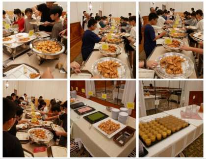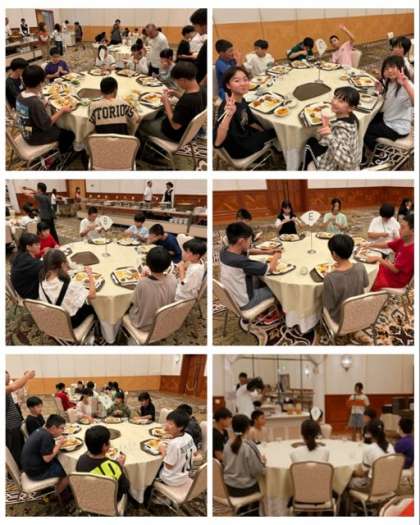 ホテルでのお楽しみの一つ、夕食の時間です。ビュッフェ式で、子どもたちの好きな食べ物がたくさんあり、みんな満足でした。