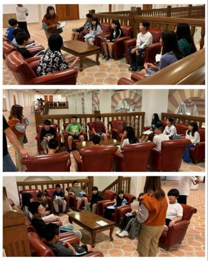 一日目の締めくくりに、生活班、活動班、スペイン村でのリーダーごとに振り返りや、明日の予定について打ち合わせました。