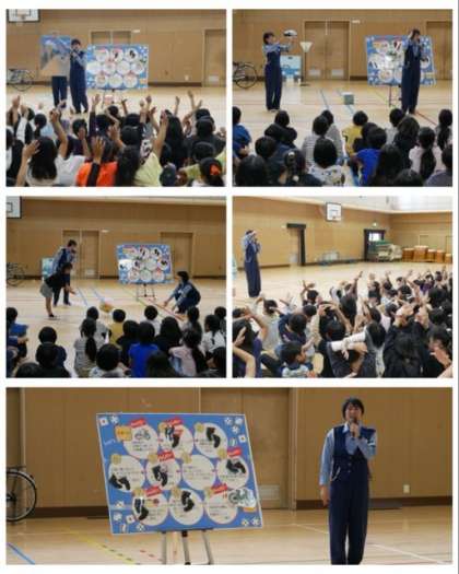 3・4年生と5・6年生は、自転車の正しい乗り方について、すごろくゲームをしながら学習していきました。歩道を自転車で通っていいのかや、雨の日に傘をさして自転車を運転していいのかなど、たくさんの問題に挑戦しながら、正しい知識を学びました。