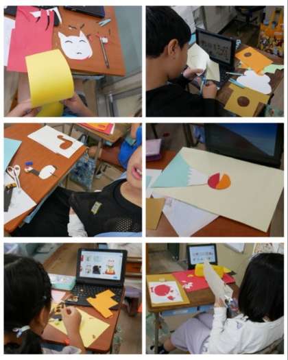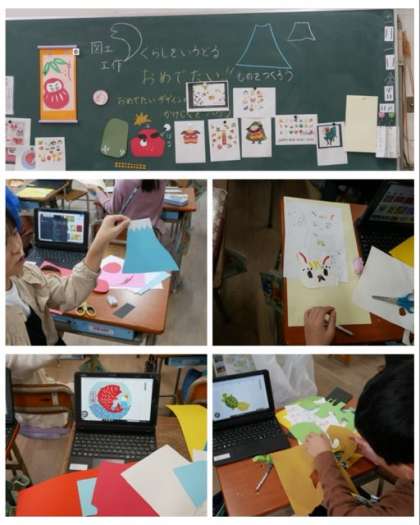 3年生は、図画工作科で「くらしをいろどる、おめでたいものをつくろう」をテーマにして、富士山や、鶴亀、招き猫などを作りました。