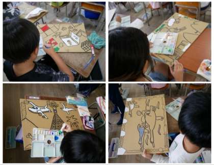 4年生は、作品展に向けてダンボール紙に絵を描いています。さて、どんな仕上がりになるのでしょうか。