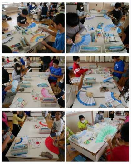 6年生は、作品展に向けて工作に取り組んでいます。テーマは「和」。どんな個性的な扇子が出来上がるでしょうか。