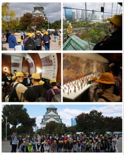次に、大阪城で天守閣まで上がり、豊臣秀吉の生涯について見学しました。