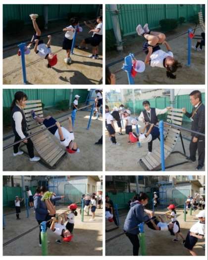 2年生は、体育科で鉄棒の学習をしました。逆上がり練習機を使ったり、補助ベルトをしたりして、逆上がりができるように頑張りました。