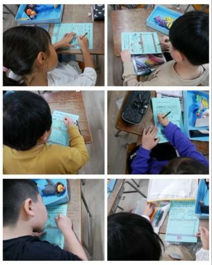 今日は、全学年で保護者の方へ作品展への招待状を気持ちを込めて書きました。写真は、2年生の児童が作成している様子です。11月15日と16日に開催します作品展にぜひお越しください。