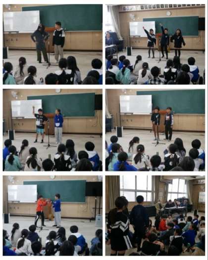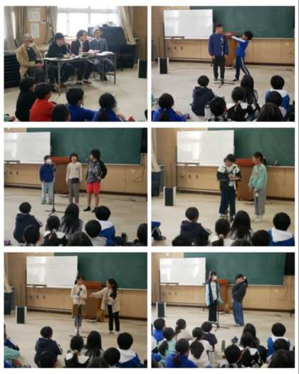 まずは、芸人さんから漫才をする時のアドバイスをしていただいたあと、練習した漫才を発表しました。どのグループも、セリフをすっかり覚えて元気に漫才をし、見てる人を楽しませてくれました。