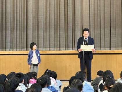今日の全校朝会は、「大阪の子」に掲載された本校児童の作文を紹介しました。
