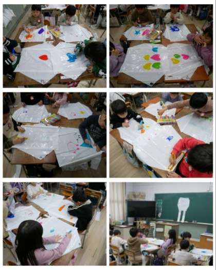 1年生は、生活科で使うぐにゃぐにゃだこに思い思いのイラストを描いていました。