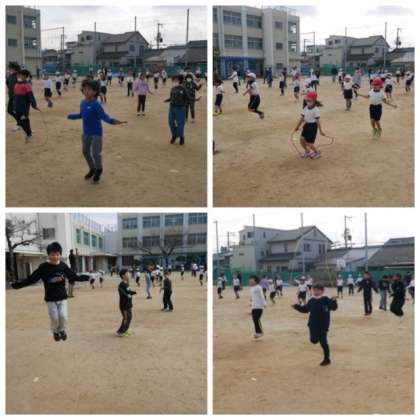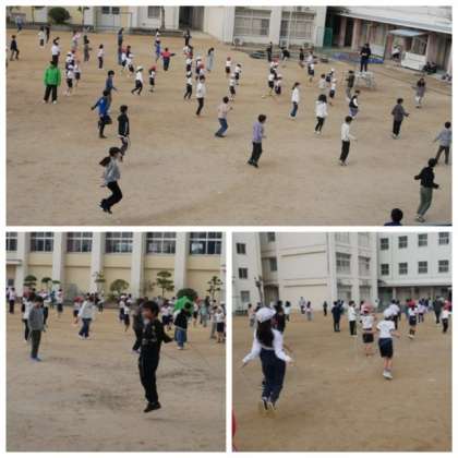 今週と来週の2週間、2時間目と3時間目の間の業間休憩時に、2・4・6年生と1・3・5年生に分かれてなわとびをします。