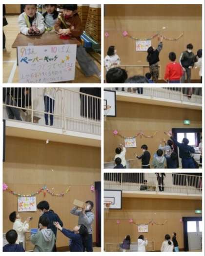 ペーパーキャッチは、上から紙を落として、ボウルや箱などでキャッチします。