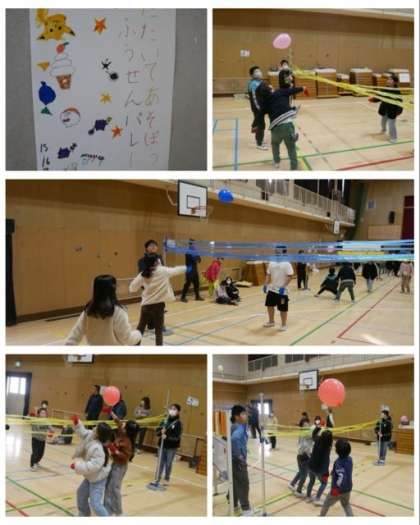 風船バレーは、ボールの代わりに風船を使ってバレーボールをします。