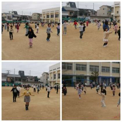 なわとび週間も二週目に入りました。今日は、1・3・5年生の番でした。