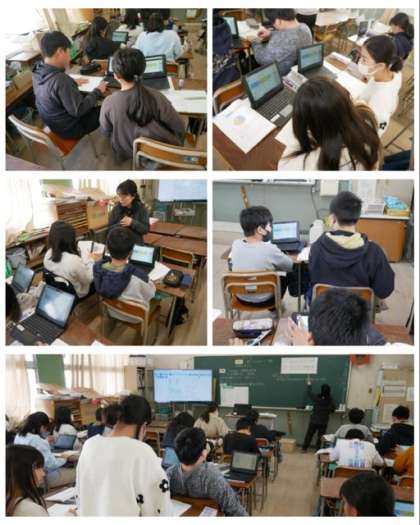 5年生は、算数科で帯グラフの学習をしました。デジタル教科書を使って帯グラフを作りました。