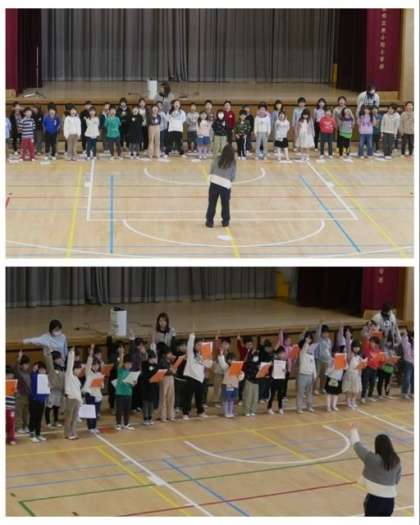 1年生は、4月7日(月)に実施する入学式で新入生のお迎えの演技をするので、早くも体育館で練習に取り組んでいます。
