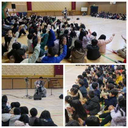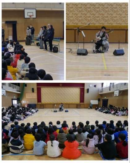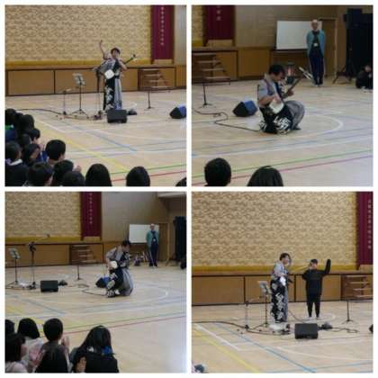 PTAのみなさんが、子どもたちに楽しんでもらおうと、お楽しみ会を開催していただきました。今年度の演目は津軽三味線パフォーマンスです。