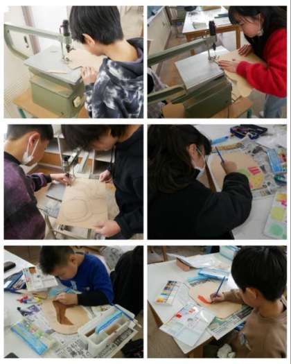 5年生は、図画工作科で掲示板の作成の続きをしました。電動糸鋸の操作にも、だいぶん慣れてきました。