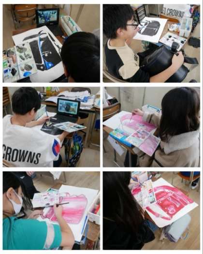 6年生は、図画工作科で6年間背負ってきたランドセルを気持ちを込めて描いていました。