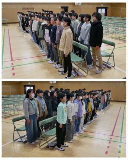 講堂にひな壇が設置され、いよいよ卒業式の練習が本格的に始まりました。