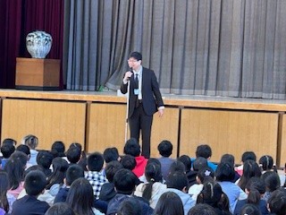 校長からは、朝のあいさつがきちんとできているので、この調子で続けていき、いい学校になるように頑張りましょうと呼びかけ、「挨拶」という漢字の意味について言及。自分の心を「開き」、他の人に「近づい」て、心の距離を縮めて、先生や友だちといい人間関係をつくっていきましょう、と。