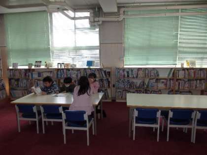 本日4月15日(火)は午前10時25分から10時40分までの中休みに、学校図書館(図書室)を開放していて、その様子です。数年前からリニューアルされて、図書もきれいに整理整頓されています。図書ボランティアやサポーターの方の協力により、中休みや放課後に随時開放されます。
