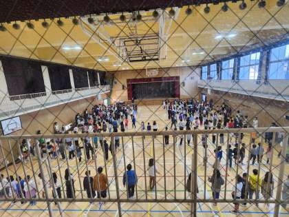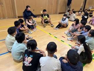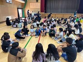5月1日(木)の朝8時30分より講堂で、児童集会が行われました。今日は、初めてたてわり班で集まり、みんなで自己紹介をしました。