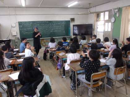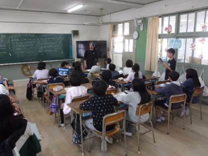 教室に戻って来て、自分が発見した「見立て」を、クラスのみんなの前で発表です。まだ、導入の部分なので、これからどのように授業が展開されていくか、楽しみですね。