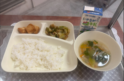 ★ホイコーロー★中華スープ★あつあげのピリ辛あえ★ご飯★牛乳