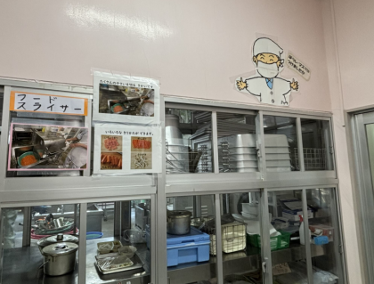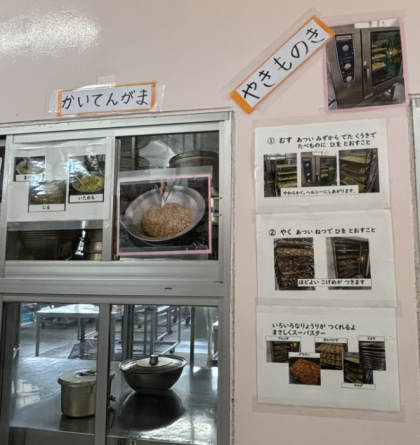 昨日の学校たんけんに先立って、給食室の中にある機械を紹介する掲示を貼っています。給食室に来たときは、掲示見て、給食室の中をのぞいて、見くらべてみてくださいね。