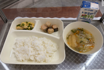 ★さけのみそ焼き★五目汁★えんどうの卵とじ★ご飯★牛乳