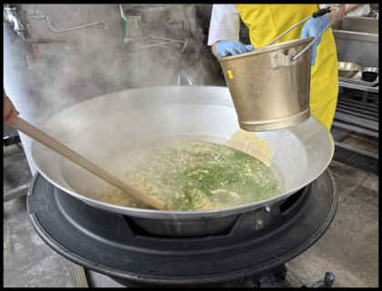 給食室の中では、ほかの食材についてしまうことがないよう、よりいっそう気をつけて調理しています。(昨日は、大豆の除去食の鶏肉とコーンのシチューが登場しました。)
