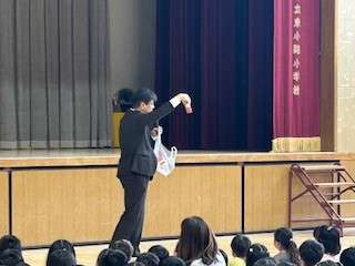 5月19日(月)の8時30分より講堂で、全校朝会がありました。学校長より、今週木曜日に学校から大阪・関西万博に行くことについて話がありました。