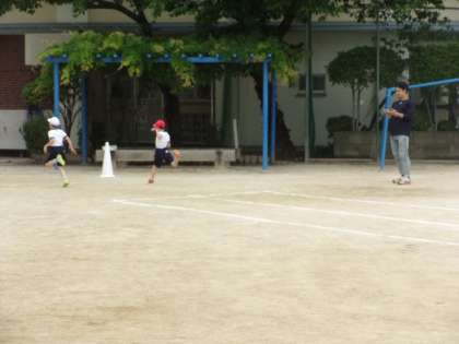 本日5月26日(月)より、「新体力テスト」の測定が学年ごとで始まります。写真は、3年生が50メートル走の測定を行っている様子です。