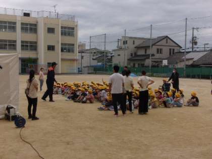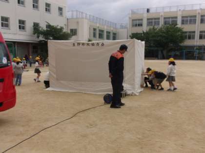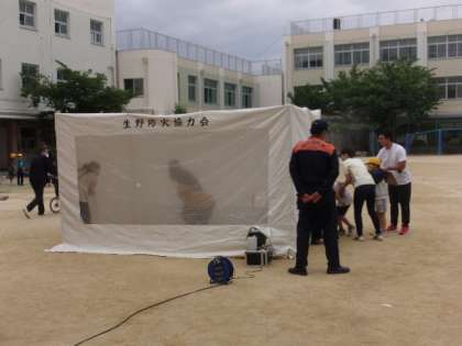 いったん教室に戻って休憩をとり、低・中・高学年の2学年ずつで、防災体験に取り組みました。