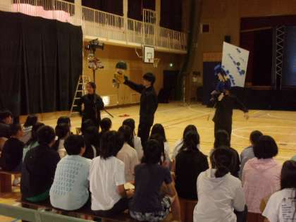 人形劇に、真剣に聞き入り、また時には笑いもあり、素晴らしい劇に対して、最後は感動の大拍手で終わりました。